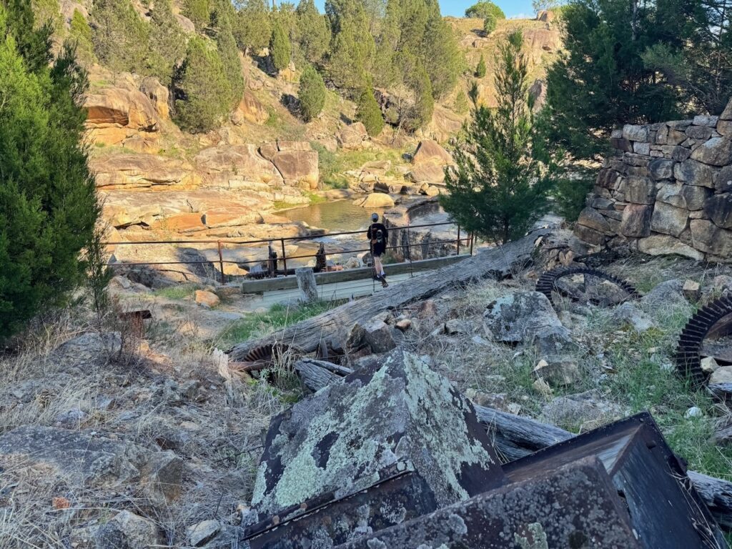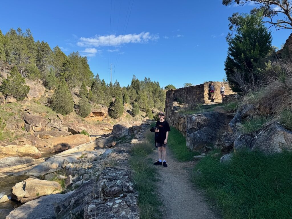 We continued down the paths alongside the creek toward the other thing we were keen to see in Adelong – the Adelong Falls Gold Mill Ruins. It was amazing to learn about the history and ingenuity of everything that was built in the 1860s to mine for gold at an industrial scale. It was a decent walk there – and while there was a bit of complaining about how far the walk was, but the kids definitely enjoyed seeing all the ruins and putting pieces together about how it all worked.