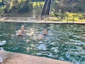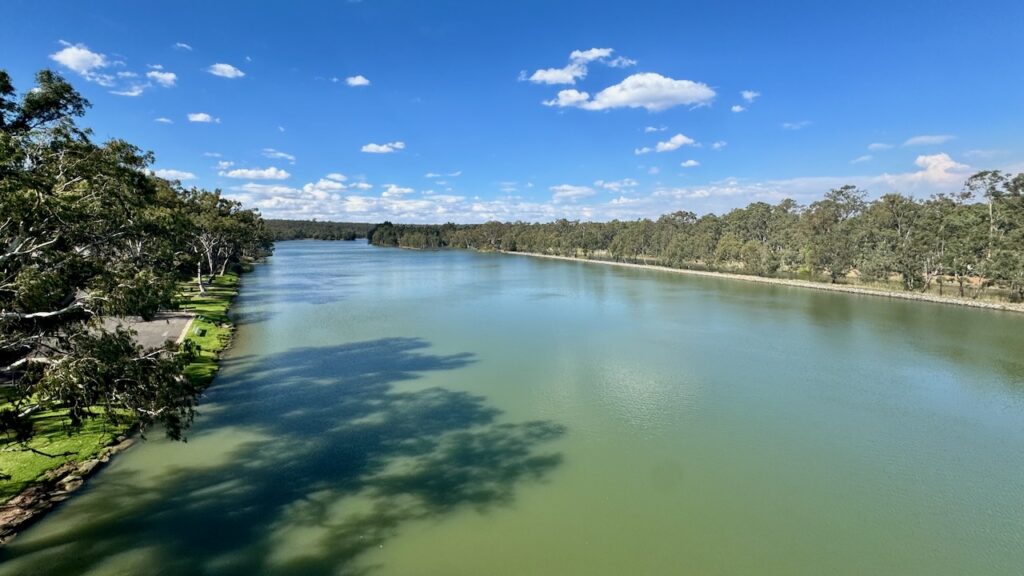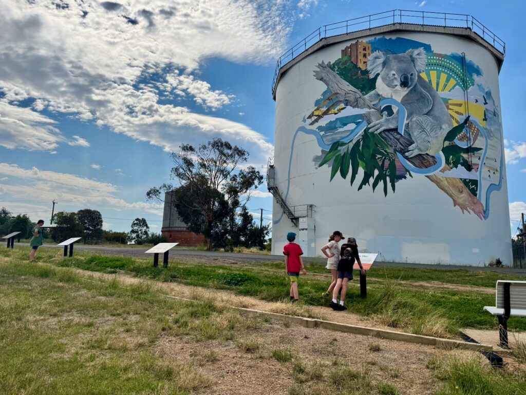 Narrandera is a decent sized town, right on the Murrumbidgee River. We quickly stopped by their water tank on the way in to have a look at the artwork. We’d really enjoyed spotting lots of silo art when we travelled round Australia, so we thought this was a good addition to that. The water tank supplies all of Narrandera’s town water – it’s connected to a bore near the Murrumbidgee, and the water is pumped up to the tower at the top of town.