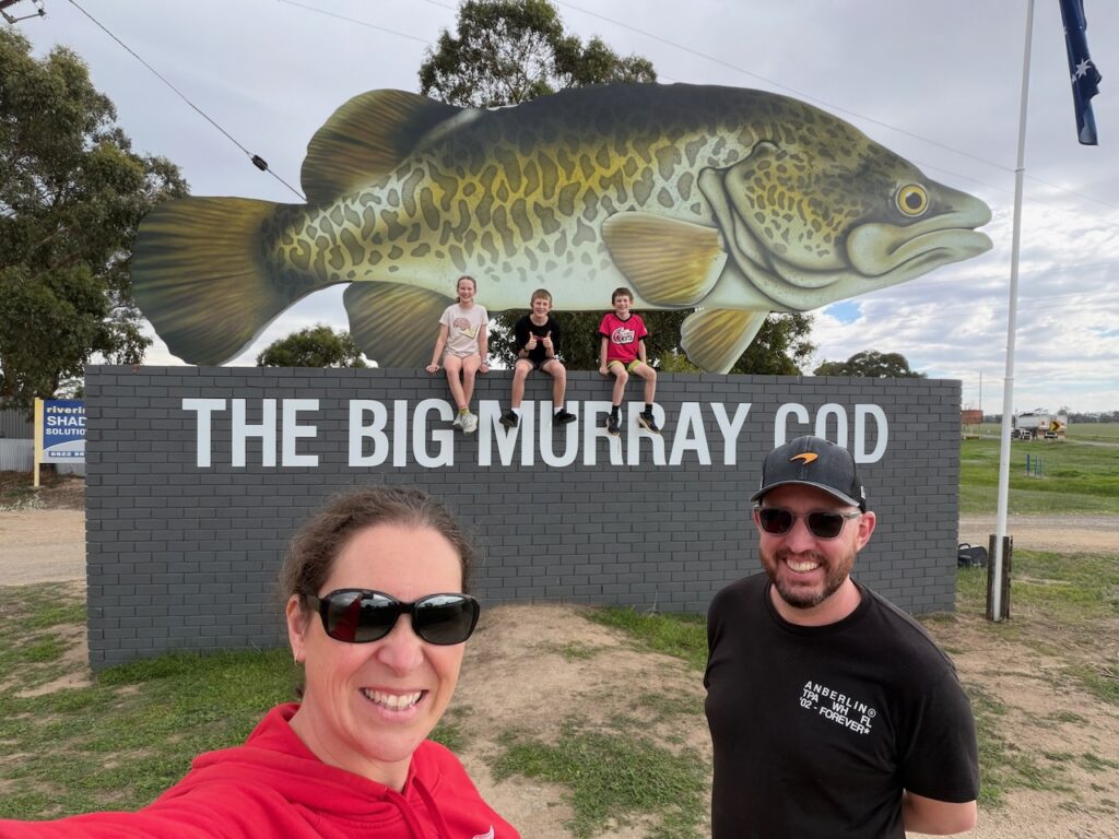 Once we made it back to the car and had a bit of morning tea, it was on the road toward our next stop for the day: Narrandera. On our way in, we thought we stumbled on another Big Thing! And we sort of did… but it felt like it was a half effort. It was definitely what it said on the box: a Big Murray Cod. But it was just a big 2D printed fish with the words underneath – no other explanation or even purpose – it was just sitting randomly at the side of the road. We all felt like Swan Hill did a better job (see day 20 of Round Australia).