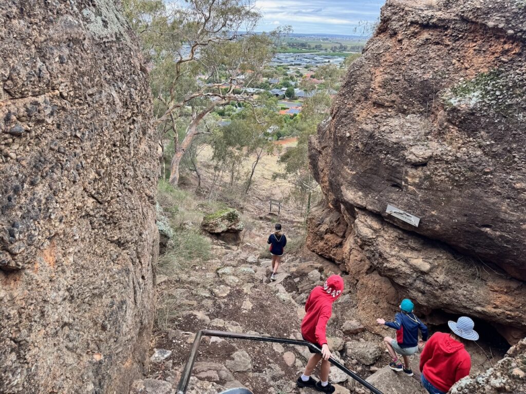 With Hay only being about 90 mins away, we spent most of today in and around Griffith. The day started with heading up to the the huge hill and scrubland area that overlooks Griffith, called Scenic Hill. Up there we quickly checked out an amazing piece of artwork on the town’s water tower, before heading down to explore an area known as the Hermit’s Cave. It’s where an Italian migrant called Valeri Ricetti chose to make himself a home in the mid 1900s, and created cave-like structures around the rocks including a garden area where he apparently grew fruits and vegetables. It was a fascinating walk, but sadly covered in a lot of litter which took away from the experience somewhat.