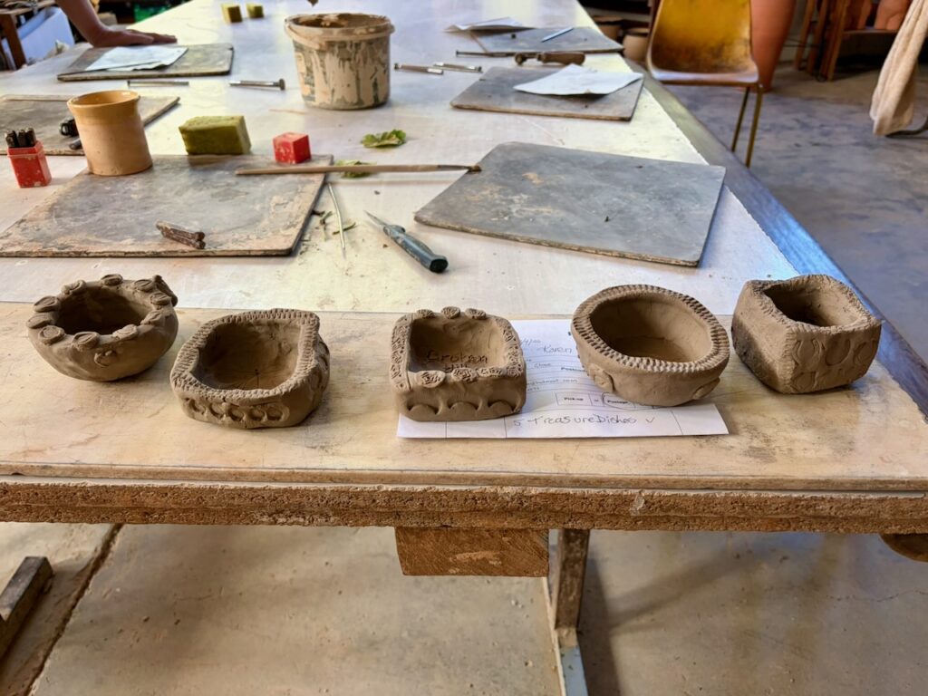 We sat down at a long table with Karen, who was our pottery teacher for the morning. She had a great dry sense of humour, and really involved the kids in the whole process and made it incredibly fun for them – and for us! We got to make our own little “treasure dish”, using a bunch of different techniques that Karen talked us through. There were plenty of different ways to decorate the dishes, and we each ended up with our own unique dish. They will take about 6 weeks to get to us – they obviously have to dry them and then fire them – so it will be a nice surprise in the mail in a bunch of weeks!